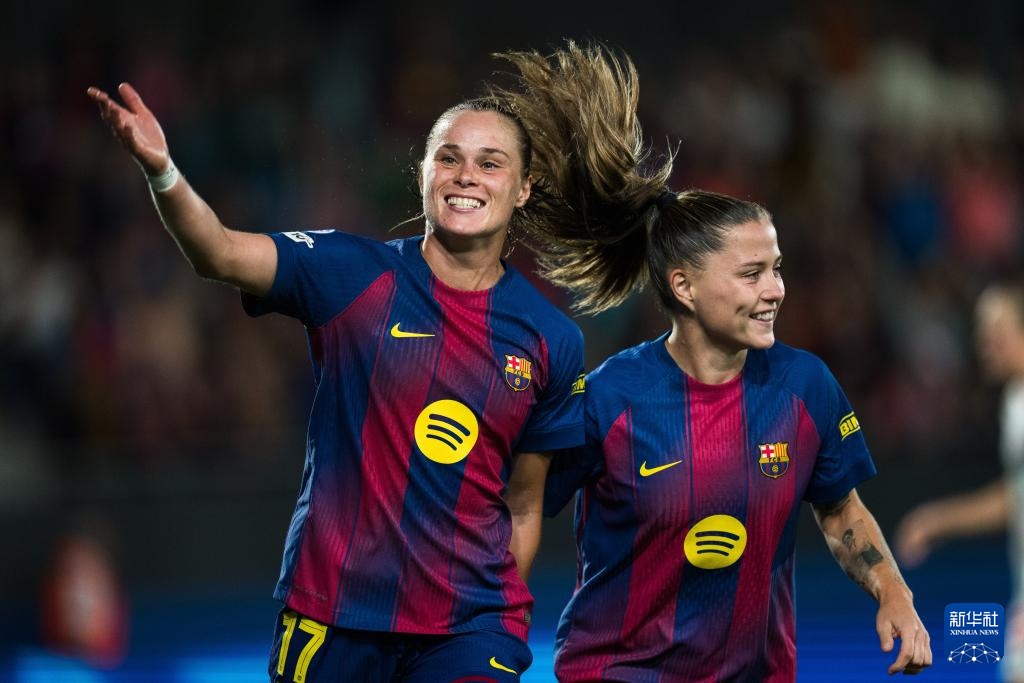 10月7日,巴塞罗那球员(左)和皮纳庆祝比赛进球。当日,2025-2026赛季欧洲女足冠军联赛第一轮比赛中,巴塞罗那主场7-1击败拜仁慕尼黑。新华社(胡安·戈萨 摄)10月7日,巴塞罗那球员洛佩斯(右)与拜仁慕尼黑球员维戈斯多蒂尔进行了比赛。当日,2025-2026赛季欧洲女足冠军联赛第一轮比赛中,巴塞罗那主场7-1击败拜仁慕尼黑。新华社(胡安·戈萨 摄)10月7日,巴塞罗那球员皮纳庆祝比赛进球。当日,2025-2026赛季欧洲女足冠军联赛第一轮比赛中,巴塞罗那主场7-1击败拜仁慕尼黑。新华社(胡安·戈萨 图)10月7日,巴塞罗那球员庆祝比赛进球。当日,2025-2026赛季欧洲女足冠军联赛首轮比赛中,巴萨主场7-1击败拜仁慕尼黑。新华社(胡安·戈萨 图)10月7日,巴塞罗那球员布鲁格斯(中)勒)在比赛中防守拜仁慕尼黑球员达尔曼(右)。当日,2025-2026赛季欧洲女足冠军联赛第一轮比赛中,巴塞罗那主场7-1击败拜仁慕尼黑。新华社(胡安·戈萨 图)10月7日,巴塞罗那球员普特利亚庆祝比赛进球。当日,2025-2026赛季欧洲女足冠军联赛第一轮比赛中,巴塞罗那主场7-1击败拜仁慕尼黑。新华社发(胡安·戈萨 摄)